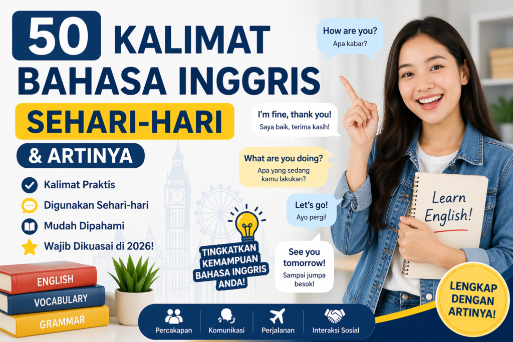 Bahasa Inggris kini menjadi syarat wajib atau nilai plus di hampir semua bidang, karena itu menguasai kalimat bahasa inggris sehari hari bukan lagi pilihan melainkan kebutuhan. Kemampuan berkomunikasi dengan lancar dan natural dimulai dari memahami contoh kalimat bahasa inggris sehari hari yang paling sering digunakan oleh penutur asli. Kami telah menyusun 50 kalimat bahasa inggris dan […]
